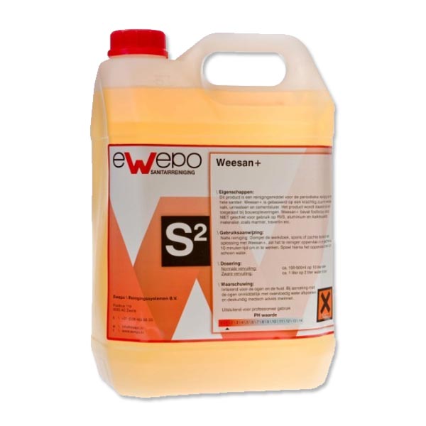 Let op: Weesan+ bevat fosforzuur en is niet geschikt voor het gebruik op RVS, aluminium en kalkhoudende materialen zoals marmer, travertin etc.