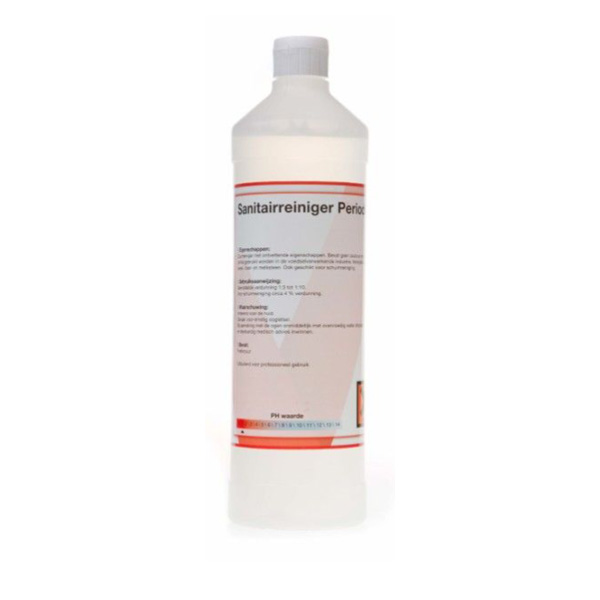 Ewepo Sanitairreiniger Periodiek is een zure reiniger met ontvettende eigenschappen. Sanitairreiniger Periodiek is geschikt voor het periodiek reinigen en ontkalken van sanitair, wasplaatsen, kleedkamers etc. Het product kan veilig worden toegepast op tegels, plavuizen, metaal, glas, glazuur, kunststoffen en zuurbestendige steensoorten. Sanitairreiniger Periodiek is tevens uitstekend in te zetten als aluminiumreiniger waarbij het vuil, vet en oxidatie verwijdert.