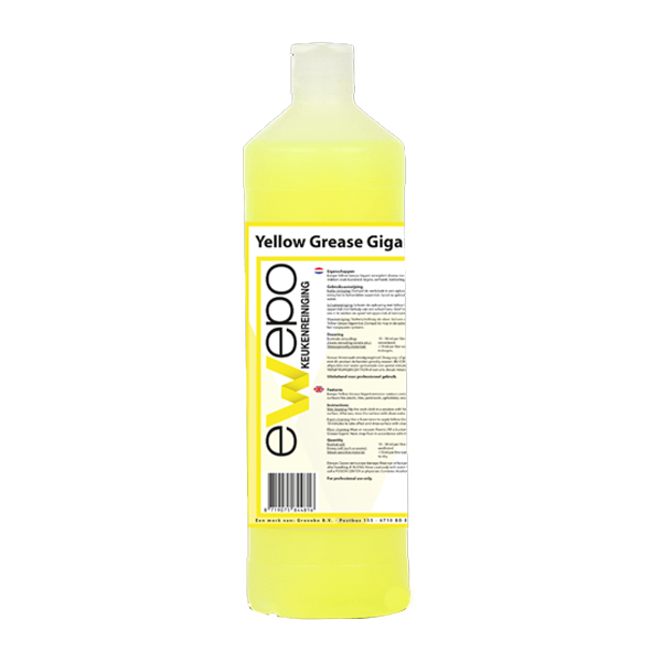 Natte reiniging: Dompel de werkdoek in een oplossing met Yellow Grease Gigant en reinig het te behandelen oppervlak. Spoel na gebruik de oppervlakken af met schoon water.