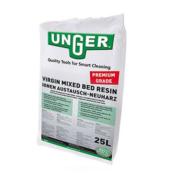 Mengbed-reservehars met hoge capaciteit. Produceert onmiddellijk 100 % zuiver water voor streeploze glasreiniging.