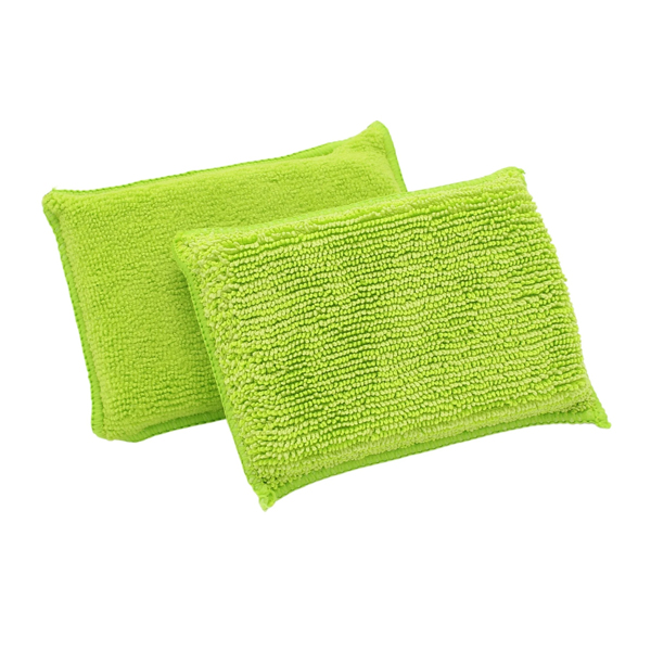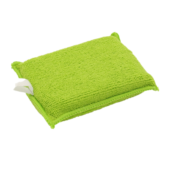De groene microvezels aan weerszijden zorgen ervoor dat deze spons grondig maar zacht reinigt zonder gevaar voor krassen.