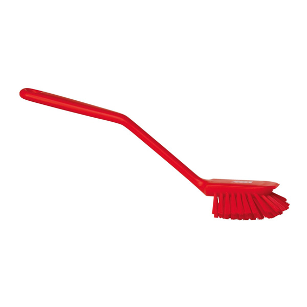 Deze afwasborstel is voorzien van een borstelharen die onder een hoek aan de borstel zijn bevestigd. Dit zorgt ervoor dat de borstel ook het vuil in hoeken eenvoudig kan verwijderen. Voor aangekoekt vuil beschikt de borstel over een kunststof schraaprand.