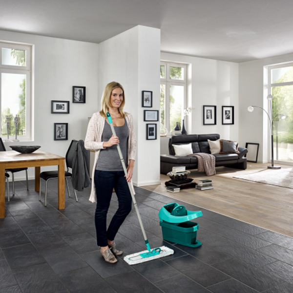 Met de Leifheit set Profi XL dweil je gemakkelijk en snel grote oppervlakken zonder te bukken en zonder handen in het vuile water. Set bestaat uit een emmer met doekpers en vloerwisser Profi XL.