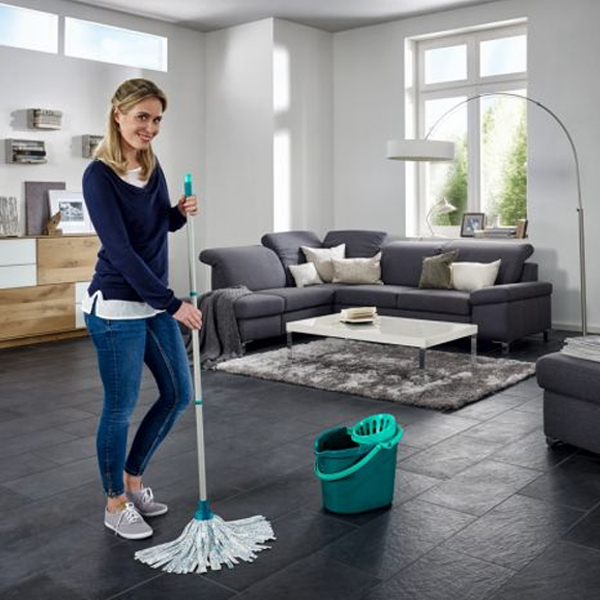 Even moppen en de vloer is stralend schoon. De Classic Mop van Leifheit neemt met zijn sterk absorberende viscose stroken vuil en water gemakkelijk en grondig op. Zo hou je meer tijd over voor andere dingen. Deze bijzonder praktische set heeft naas de mop ook een handige emmer van 12 liter en een pers voor gemakkelijk uitwringen van de mop. Met de flexibele viscosestroken kan je grote oppervlakken effectief zigzag moppen, veeg je gemakkelijk langs tafel - en stoelpoten en in moeilijk toegankelijke hoekjes. Het uitwringen gaat super eenvoudig. Zonder veel krachtsinspanning, zonder bukken en zonder vies water aan je handen. Gewoon de stroken van de mopkop met een draaibeweging in de pers leggen en dan uitpersen door de steel recht naar beneden te duwen. De viscose stroken zijn meteen net zo droog als bij uitwringen met de hand. De vervangbare mopkop is wasbaar op 60°C. De Leifheit Classic Mop heeft een stabiele steel van staal met een lengte van 120 cm.