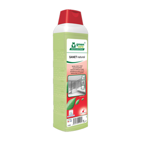 ■ SANET natural is een zure sanitaironderhoudsreiniger op basis van natuurlijk azijnzuur. Respecteert de